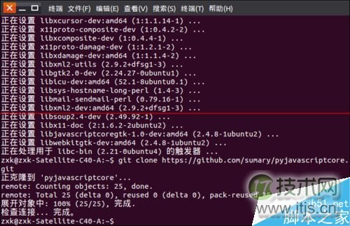 同样在终端下输入命令:git clone https://github.com/sumary/pyjavascriptcore.git