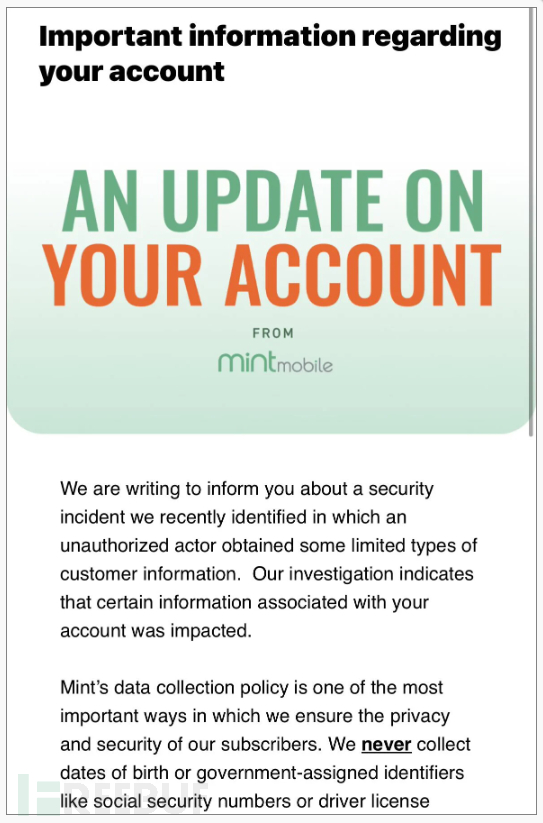 Mint Mobile数据泄露通知 来源:@CyleRickner