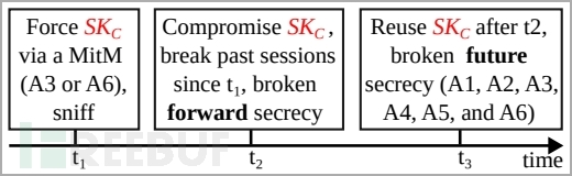 发表的论文详细介绍了六种类型的"BLUFFS"攻击,涵盖了冒充以及中间人攻击的各种组合,无论受害者是否支持安全连接(Secure Connections, SC)或传统安全连接(Legacy Secure Connections, LSC),这些攻击方式都能够实施。