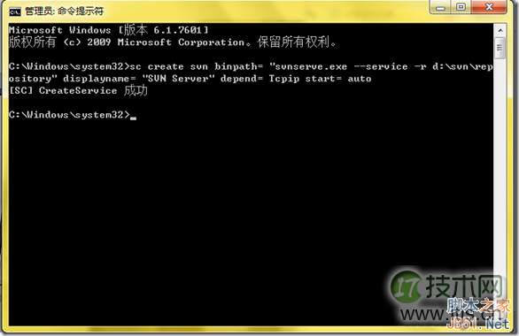 使用超级管理员权限启动cmd命令,运行sc create svn binpath= "svnserve.exe --service -r d:svnrepository" displayname= "SVN Server" depend= Tcpip start= auto。服法将服务添加到系统服务。搭建的方