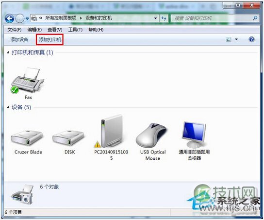 3、打当前接着在设备和打印机页面点击“添加打印机”,印文y域用如下图所示:
