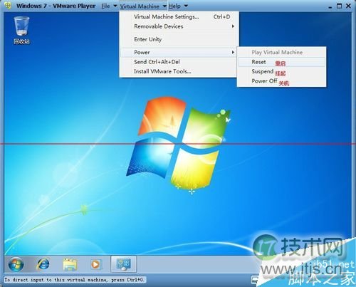 7. 当虚拟机使用完毕,我们可以选择关闭虚拟机或者挂起虚拟机。如图,关闭虚拟机相当于关机,下次使用时走开机流程。挂起虚拟机相当于Windows 7的睡眠或者xp的IT技术网待机功能,下次启动就从挂起这一刻恢复。