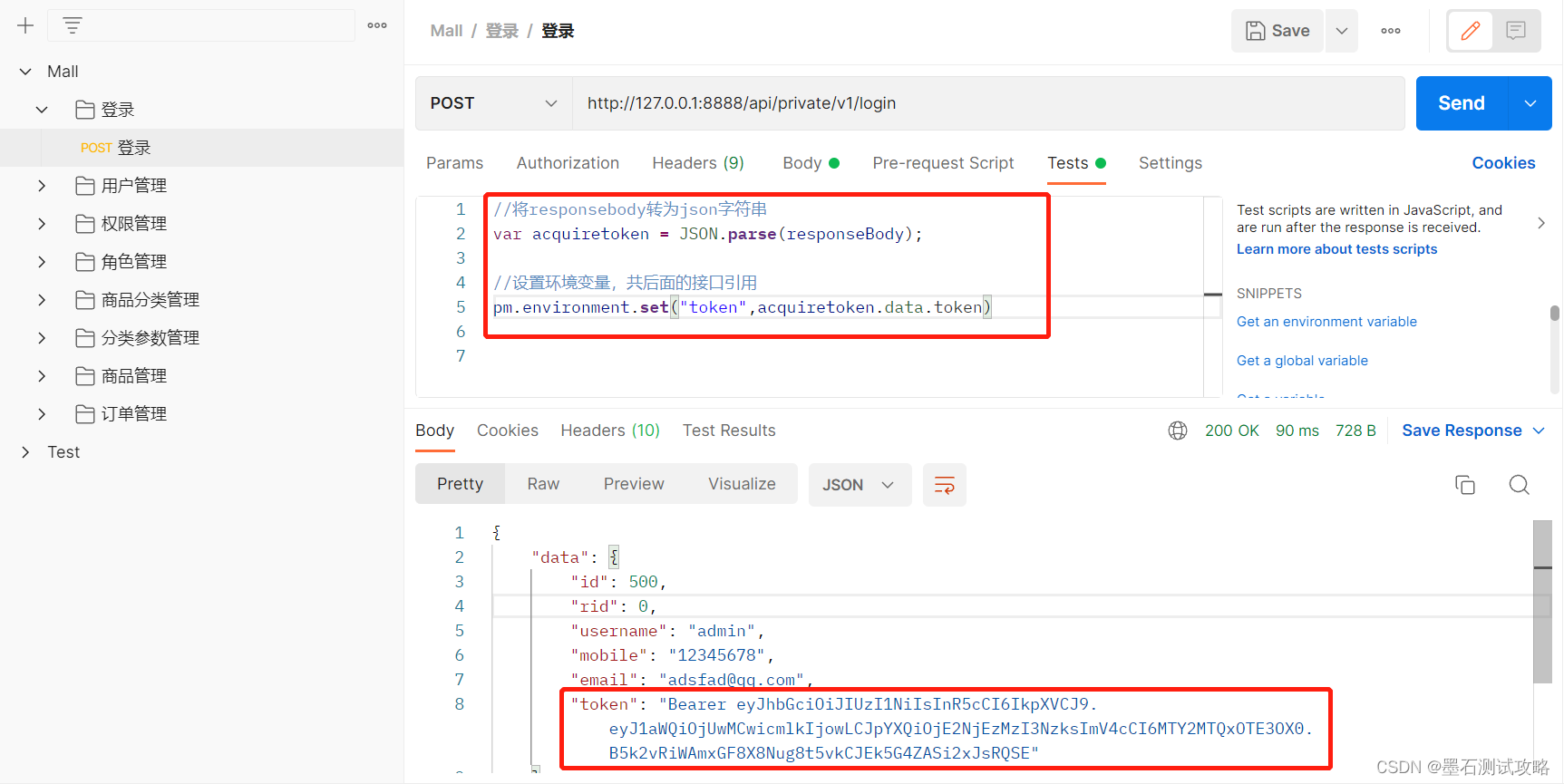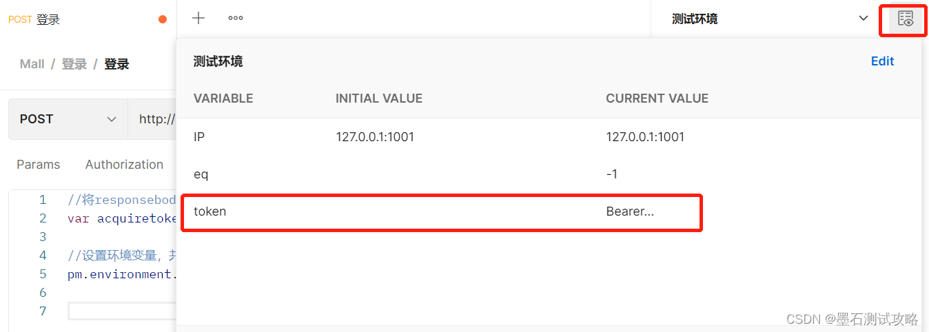 步骤二:提取获取到的token参数,并将其设置为环境变量。
