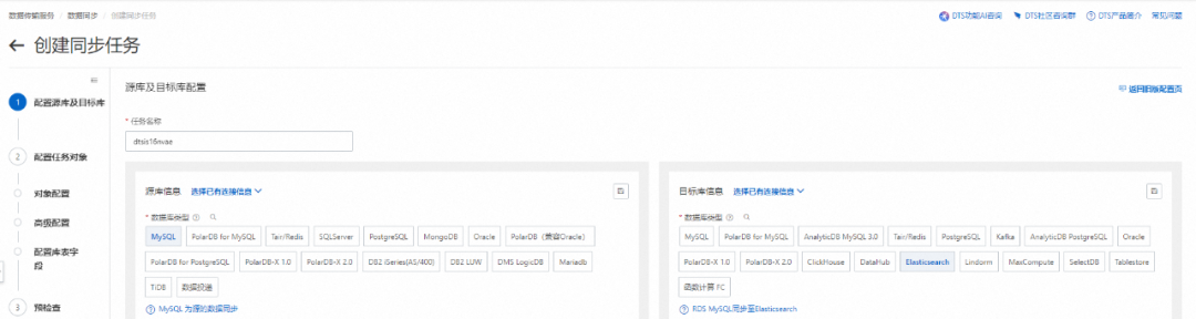 本章节通过RDS MySQL中的高防服务器生产数据实时同步到阿里云Elasticsearch中进行搜索查询,通过数据传输服务DTS(Data Transmission Service)进行数据同步操作。