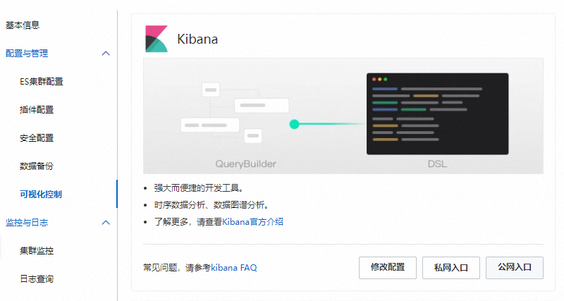 数据同步完成后,我们通过Kibana访问实例进行数据验证。