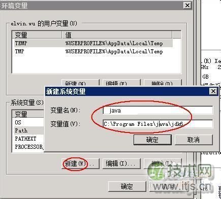 7、接着弹出的配置片方“新建系统变更”小对话框中输入变量名称“java_home”和值“C:Program FilesJavajdk6”(JDK的安装路径),如上图;