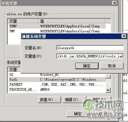 8、重复上一步,添加变量“classpath”,值为“.;%JAVA_HOME%libdt.jar;%JAVA_HOME%libtools.jar”(注意前面有两个标点.;不要遗漏了)