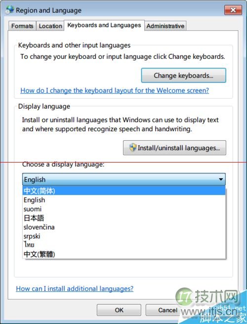 Choose a display language(选择显示语言): 点击下拉菜单,我这里已经事先安装好了几门语言,“中文(简体)”也在其中,选中它,点击确定,就是企商汇“OK”啦。
