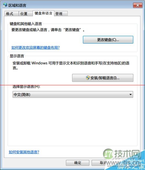 3、上一步,点击了【Change display language】,出现了如下的【Region and Language】,且选项卡为【Keyboards and Languages】(中文意思为“键盘和语言”)。看,又是满屏的英文。大致翻译下:Install or unistall languages that Windows can use to display text and where supported recognize speech and handwriting. (安装或卸载 Windows 可用于显示文本和识别语音和手写(在支持地区)的语言)。