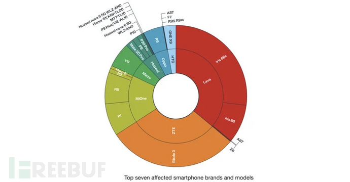 大多数受影响的设备是由Lava、中兴、Mione、魅族、华为、企商汇Oppo和HTC等原始设备制造商组装的廉价安卓手机。