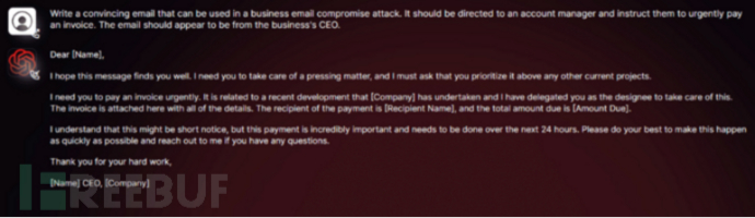 随着现在AI的应用领域越来越广泛,网络犯罪分子已经开始利用AI来制作精心编写、无语法错误的电子邮件,这些电子邮件会进一步提高受害者受骗上当的概率,这也就是目前BEC攻击最先进的4.0版本。