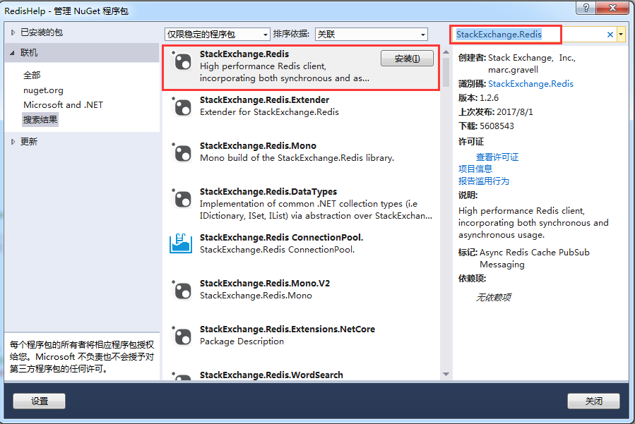 官网:https://github.com/StackExchange/StackExchange.Redis