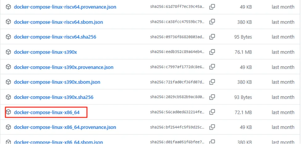在有网的安装环境下载docker-compose二进制文件,下载地址:https://github.com/docker/compose/releases