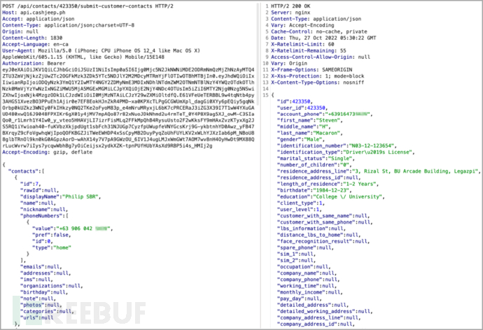 一旦授予权限,应用程序立即开始从设备中上传敏感数据到他们自己的服务器。
