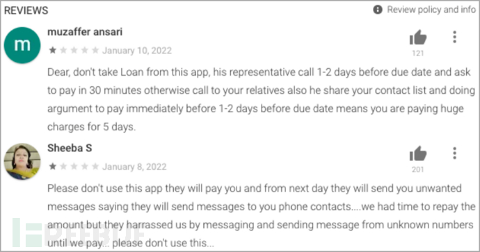 参考来源:https://www.bleepingcomputer.com/news/security/android-and-ios-apps-with-15-million-installs-extort-loan-seekers/