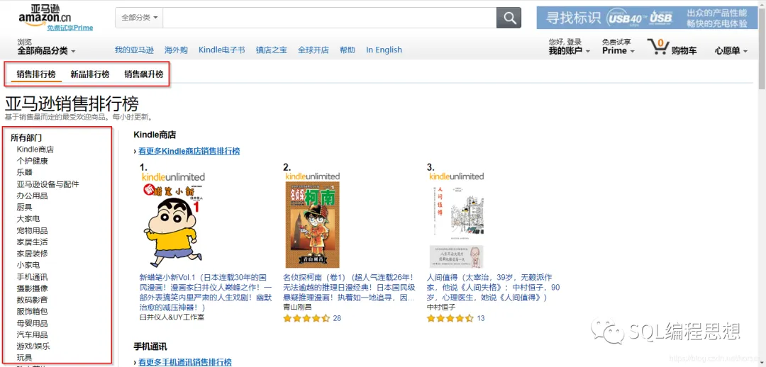 不知道你有没有注意过,实战商平售排升榜在亚马逊或者京东等电商平台的台销网站上都提供了准实时的产品分类销售排行榜。例如,行榜以下就是和飙亚马逊上销售排行榜和销售飙升榜的一个截图: