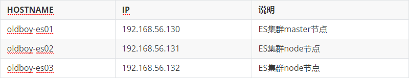 # cd /oldboyedu/softwares/elasticsearch/config # vim elasticsearch.yml # egrep ^[a-z] elasticsearch.yml cluster.name: oldboy-linux node.name: 192.168.56.130 path.data: /oldboyedu/data/elasticsearch path.logs: /oldboyedu/logs/elasticsearch network.host: 0.0.0.0 discovery.seed_hosts: ["192.168.56.130"] cluster.initial_master_nodes: ["192.168.56.130"]集群版配置文件: